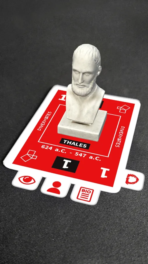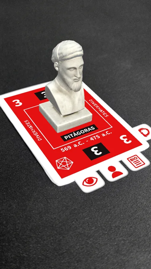 Con la app “Divermazo” podrás generar realidad aumentada en cada carta del Divermazo, y así conocer cómo era cada uno de los personajes que aparecen en él, algunos datos de su vida y alguno de sus aportes más importantes a la historia de la ciencia y las matemáticas.