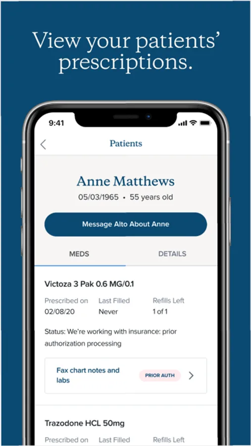 Alto Pharmacy’s communications center for healthcare providers. View current prescriptions, respond to pharmacy questions, and get alerts when a prescription needs attention.
