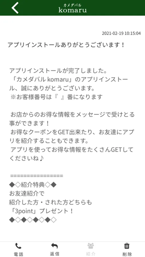 komaruのアプリをSNSを通じてお友達に紹介する事ができます。