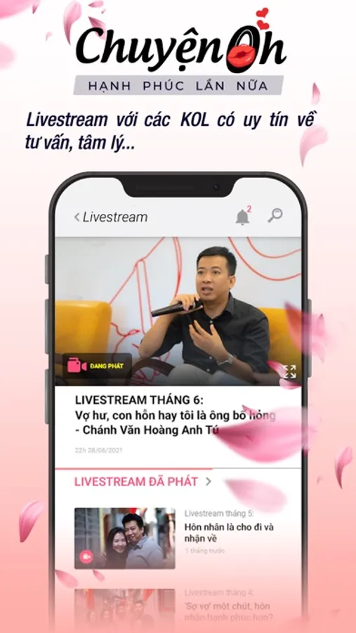 o Livestream định kỳ với host và khách mời là những nhà báo, chuyên gia có tiếng trong lĩnh vực tư vấn, tâm lý.
