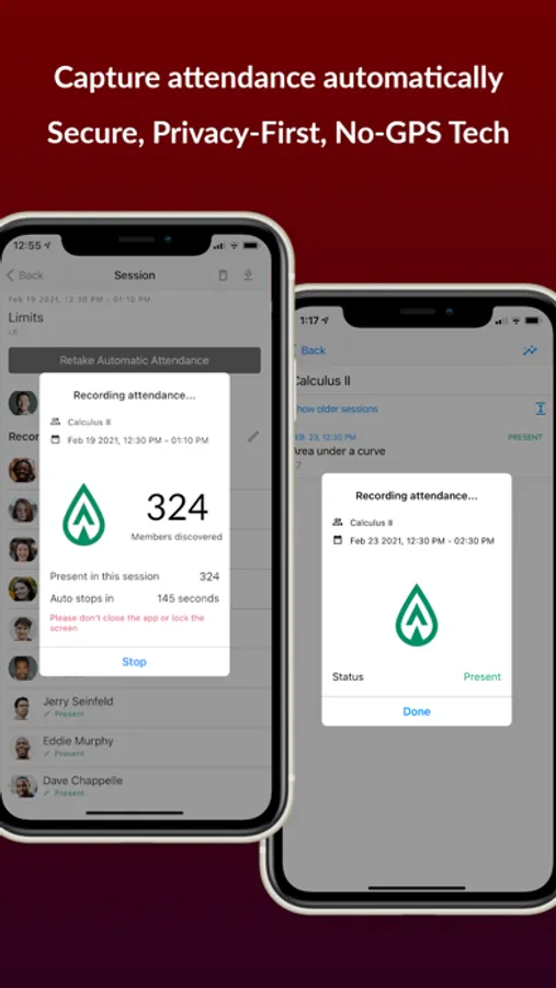 • The attendance process runs for about 150 seconds and ends automatically. Admins can manually end it sooner too