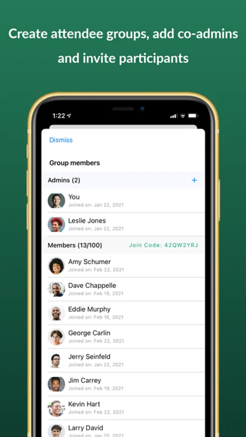 • Co-administrators: Every group can have multiple admins who can collaborate to capture and edit attendance records for the group