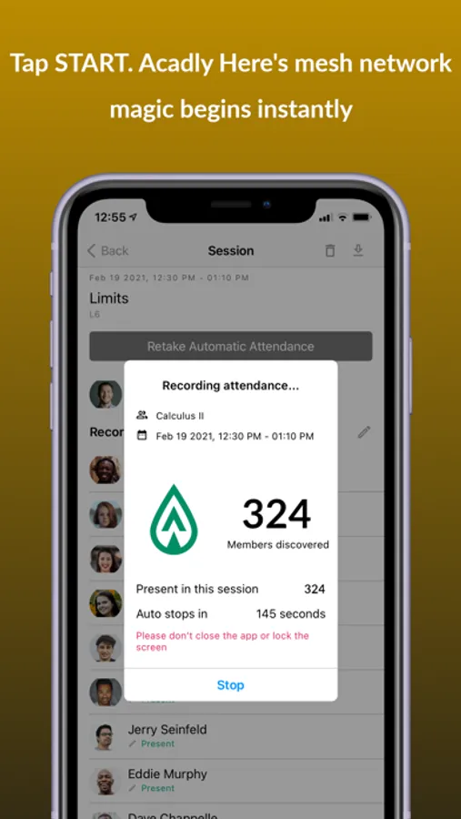Acadly Here is a mesh-network technology powered attendance automation app that helps you discover people in your proximity at the tap of a button, without using GPS on your or your attendees’ devices.