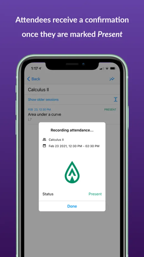 • Once the attendance process ends, attendees receive a confirmation regarding their attendance status