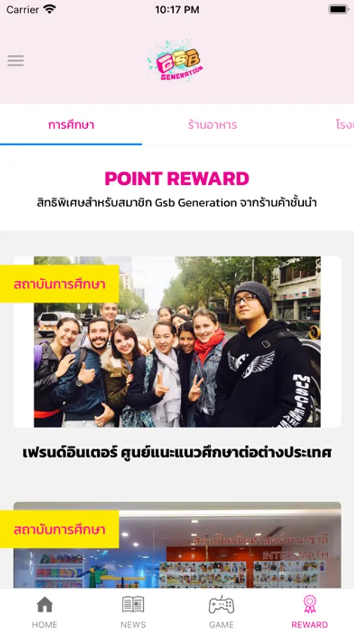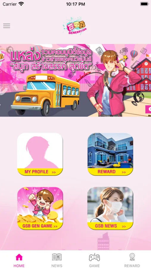 GSB Generation Application สุดยอดแอพพลิเคชั่นของวัยรุ่น แหล่งข้อมูลข่าวสารไม่ตกเทรนด์ สนุกกับกิจกรรมและเกมมากมาย พร้อมสะสมแลกสิทธิพิเศษกว่า 400 รายการ จากร้านอาหาร โรงแรม สถานที่ท่องเที่ยว สถาบันกวดวิชา สถาบันเสริมความงาม ดาวโหลดสมัครง่ายๆ แอพเดียวอยู่ วัยรุ่นห้ามพลาด