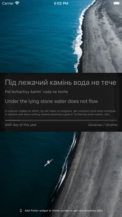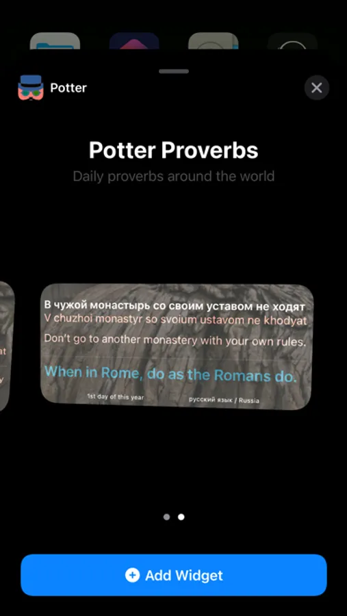 Potter widgets brings you a fresh proverb daily right on your Home Screen.