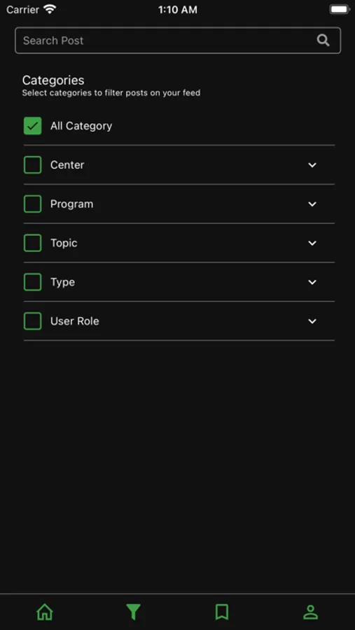 -Touch the screen and a menu at the bottom will popup. Click on Filter to search or filter the content.