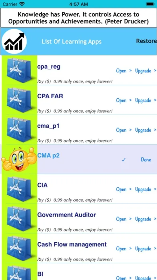 This app bundle contains the Best learning apps for the Management, economics, sales force, HRM, FSOT , administrative work, audit and accounting, for CPA, CIA, CMA, CAP, MBA, FSOT exams.and other exams.