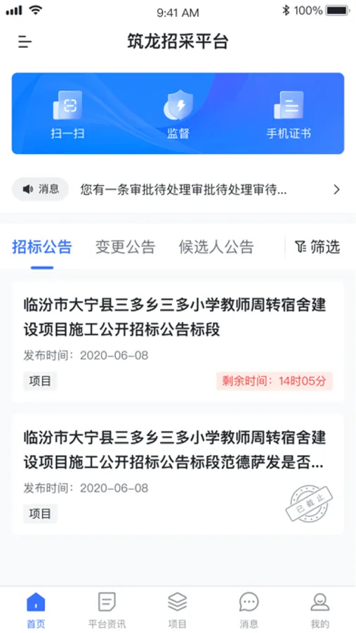 筑龙大采购App是专为负责招标投标项目的各级领导及招标投标人员提供的通过手机随时查看、管理项目情况的便捷工具,方便、移动、快捷。主要提供的功能有: