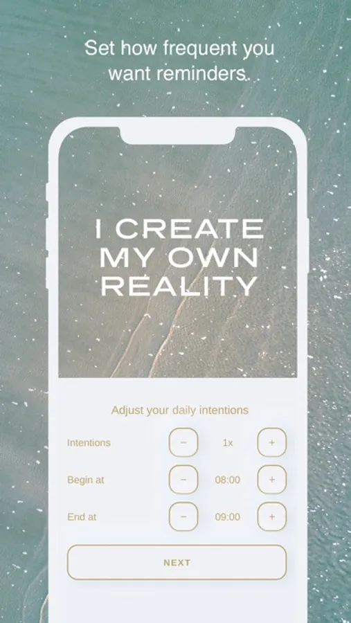 Make your own daily intentions and quotes! Get along with yourself and ask what’s most important to you. Set reminders that will help you work towards that goal. Start your day with just a few positive intentions that you genuinely believe in, and let us help you achieve them.