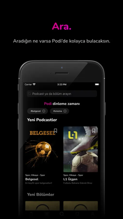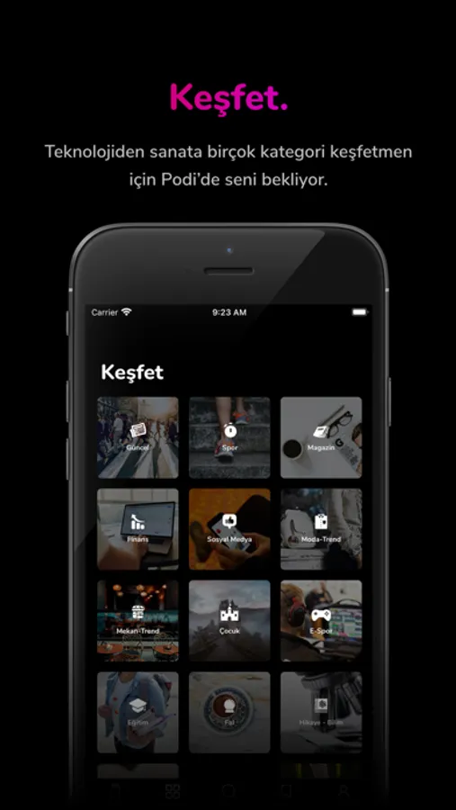 Podi’de aradığın her konu hakkında yüzlerce podcast var. Üstelik kütüphanesi gün geçtikçe zenginleşiyor. Keşfet bölümünden ilgilendiğin kategorideki podcast’leri kolayca bulabilirsin. Dahası günde üç kez güncellenen haberleriyle de Türkiye’de ve Dünya’da neler olduğunu da hızlıca öğrenebilirsin.