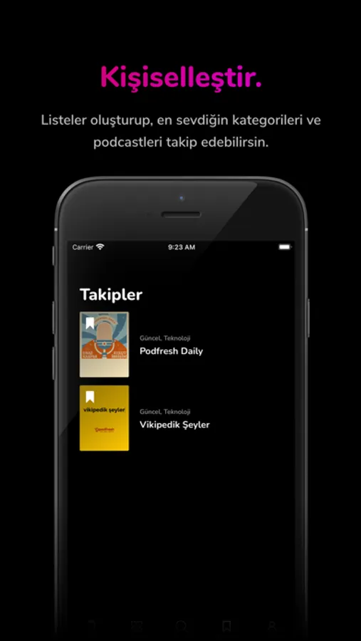 Podi’yi ilgi alanlarına göre kişiselleştirebilir ve dilediğin podcast serilerini veya kategorileri takip ederek sana özel bir kullanım deneyimi yaratabilirsin. Üstelik, dilersen bölümleri telefonuna indirerek dilediğin yerde, dilediğin zaman çevrimdışı olarak dinleyebilirsin.