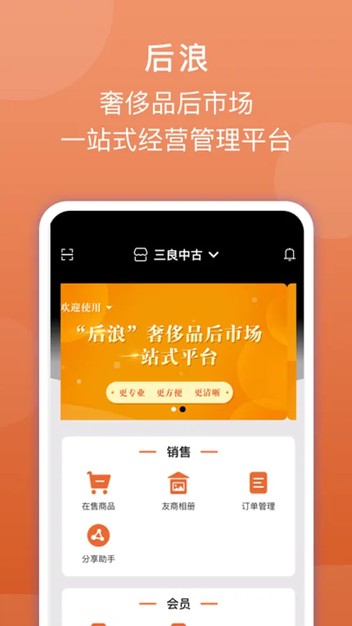 后浪是一款专为奢侈品后市场打造的一站式经营管理平台。实现了商品数字化高效管理全面打通信息流,资金流,货物流。让商家更方便的管理与触达客户,同时促进友商合作,共建良好奢侈品后市场生态,并与多直播平台合作,加快商品的销售速度。系统还采用明确职责分工的权限系统,让商家全面掌握自己的经营数据。