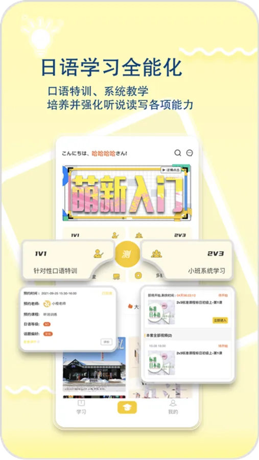 ・ 1V1口语特训,针对日语口语训练的定制课程,由专业的日语老师精心规划授课内容,在线进行口语训练,让你彻底告别哑巴日语!