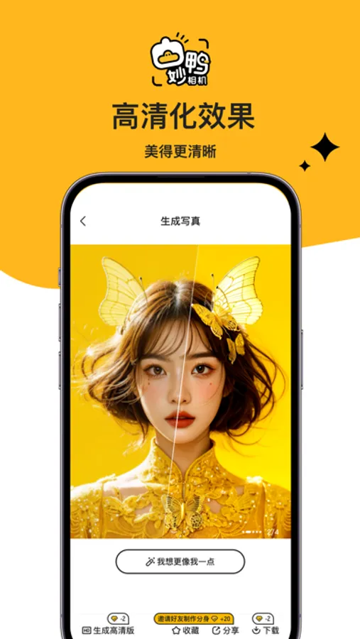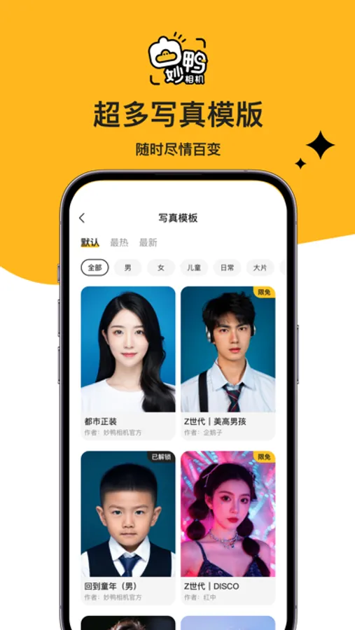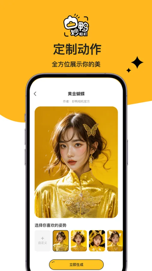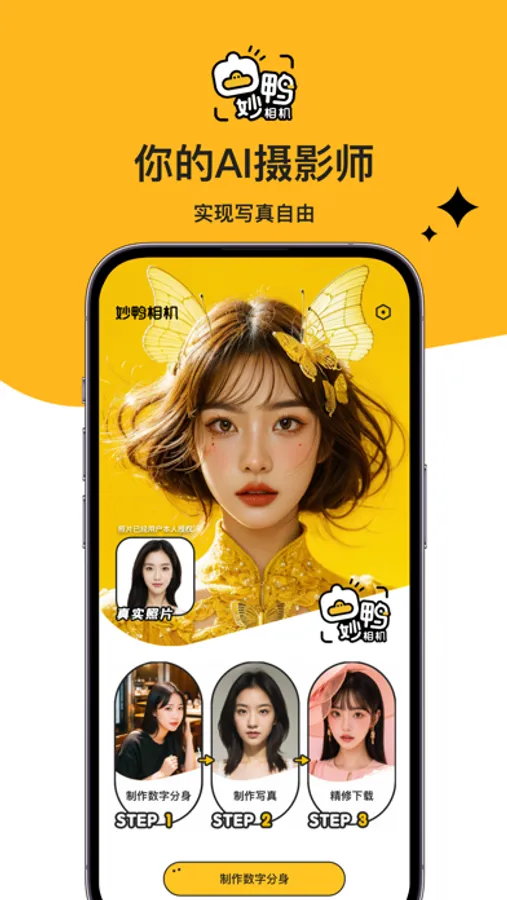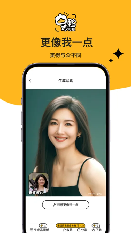 妙鸭相机是一款在线生成专业质感大片的AI相机,拥有潮流、时尚、有趣、好玩的风格模板,让你方便快捷地拥有百变照片,掌握引爆朋友圈的流量密码,成为社交圈的时尚先锋!