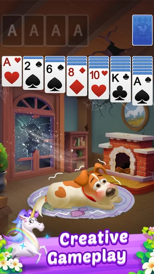 Besides the classic solitaire challenges, there are dozens of cute animals (such as lambs, cows, spotted dogs, bunnies, roosters, horses, etc.) for you to make friends with, and more animal friends are waiting for you to discover.