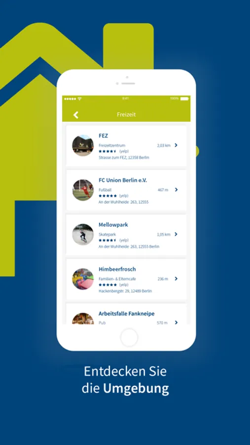 Informieren Sie sich z.B. über Geschäfte, Ärzte, Erstatten und über die Öffnungszeiten in Ihrer unmittelbarer Umgebung.