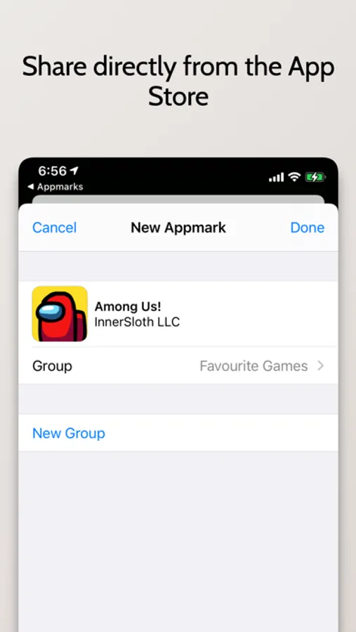- Share apps to Appmarks from the App Store share button.