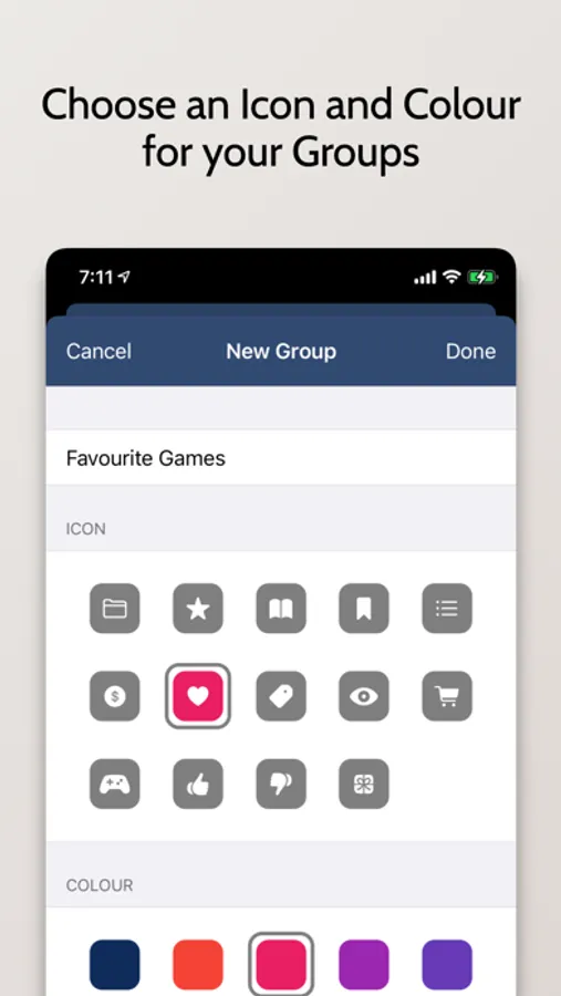 - Create groups to organise bookmarked apps with a custom title.