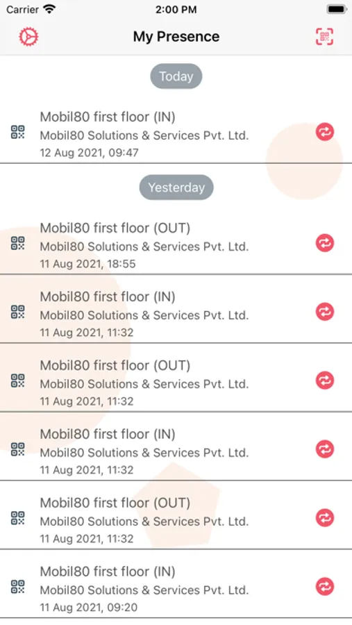 This app works in conjunction with the ‘Prezence - easy attendance’ app where the team administrator can view all scans from the related members of the team from this ‘MyPrezence’ app.
