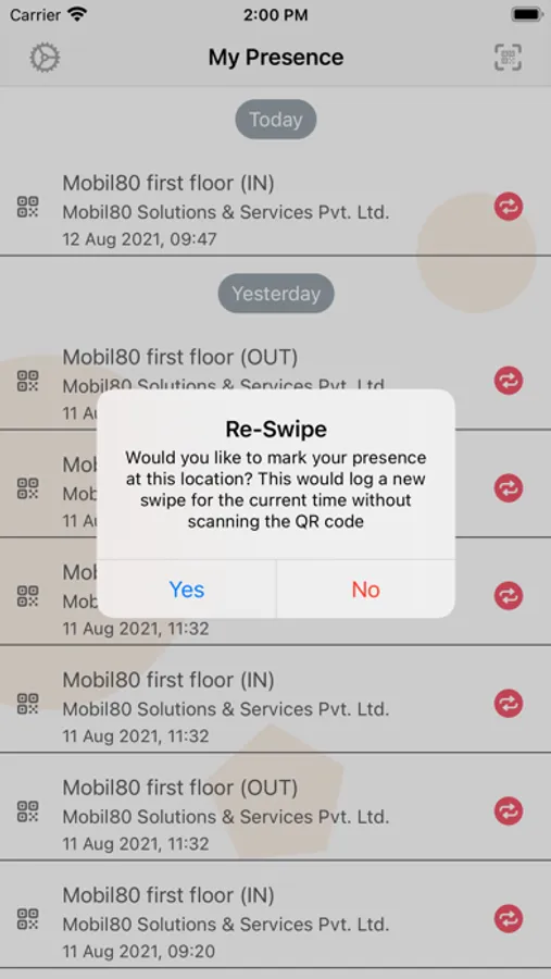 Members of a team using the Prezence solution can use this app to scan the Prezence QR Code that is made available at a location.