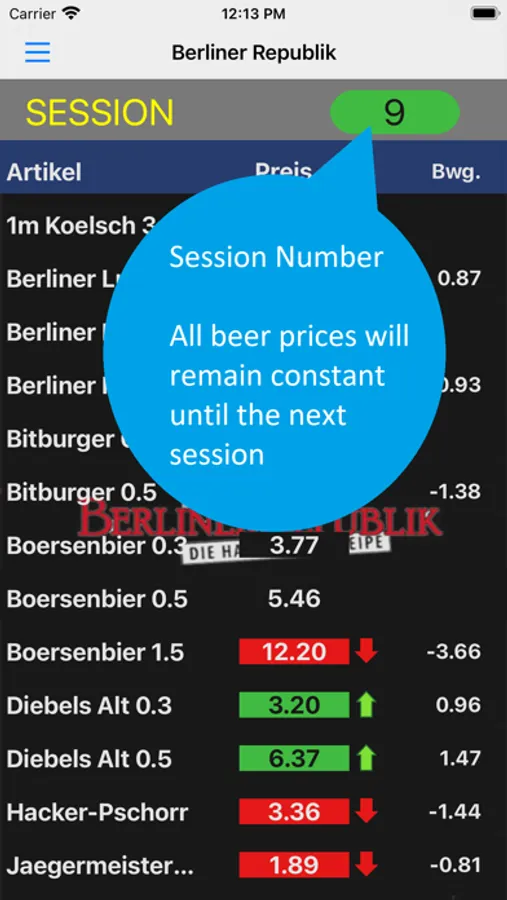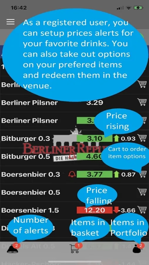 The Berliner Republik barSTOCK App displays up-to-the-minute drinks prices of all the beers being sold in the Berliner Republik in Berlibn. There are two ways of using the App: