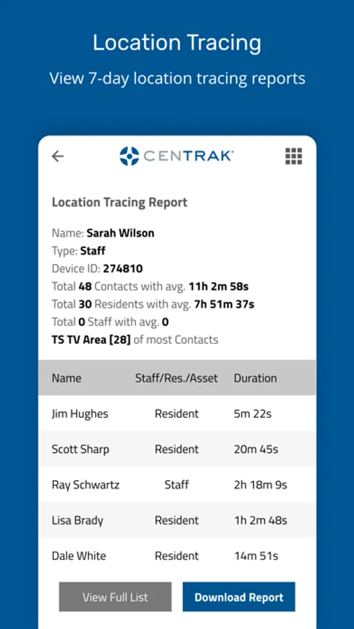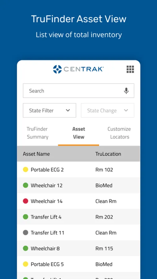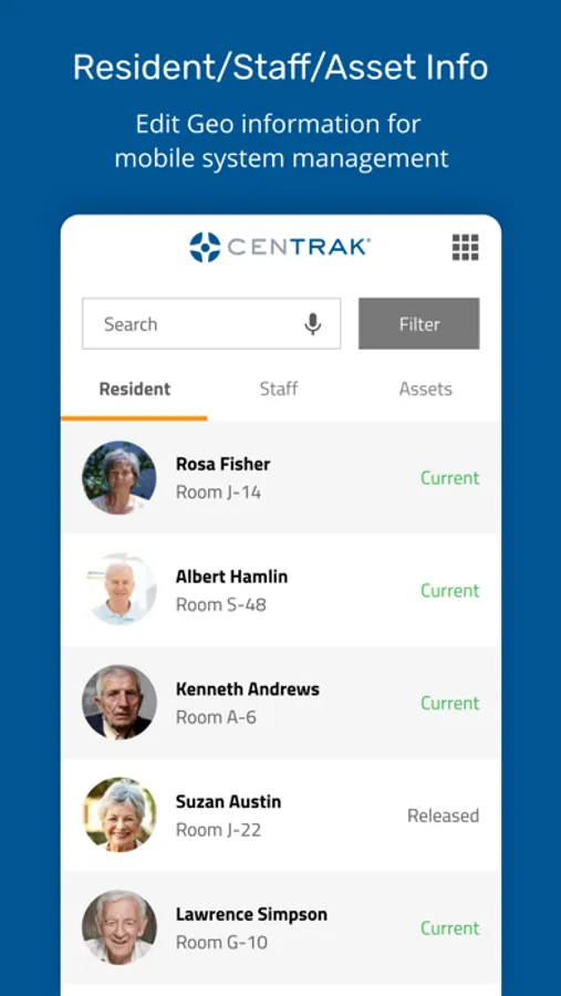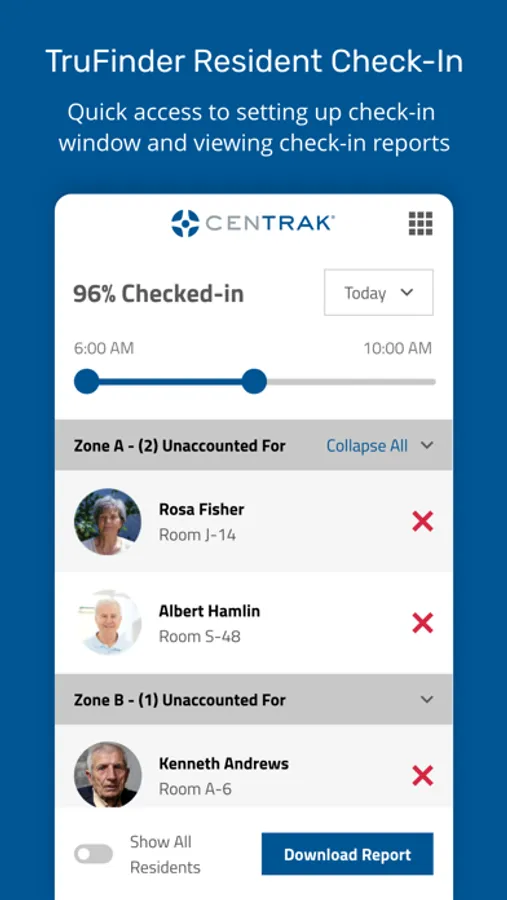 TruFinder is a mobile app for CenTrak’s TruView system. IoT'ing your Emergency Call and Wander Management has never been easier. Scan in your Geo Pendants from your mobile app in real time, update a Resident profile with a photo, find people and things, setup and view resident check-in reports and explore Location Tracing reporting with TruFinder mobile application.
