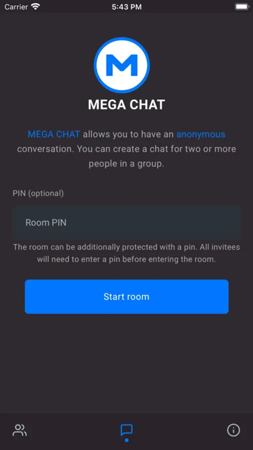MEGA CHAT is the fastest messaging app on the market, connecting people via a unique, P2P network around the globe. Chats are end-to-end encrypted. Not even MEGA CHAT can read or listen to your communication. Send and receive high-fidelity messages and explore a growing set of new features that help you stay private. History conversation is destroyed each time you leave the room. Easy to set up, easy to use group chat. Guaranteed to keep your conversations private.