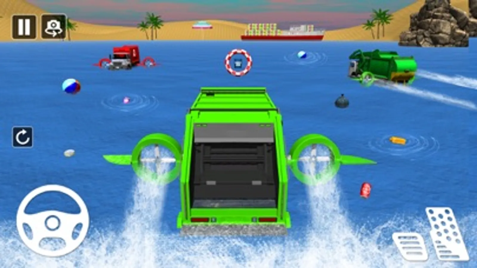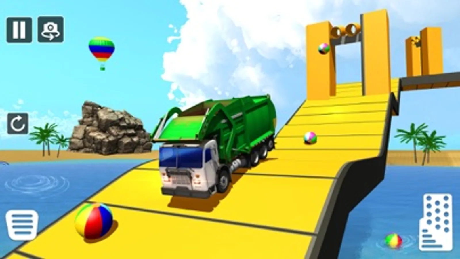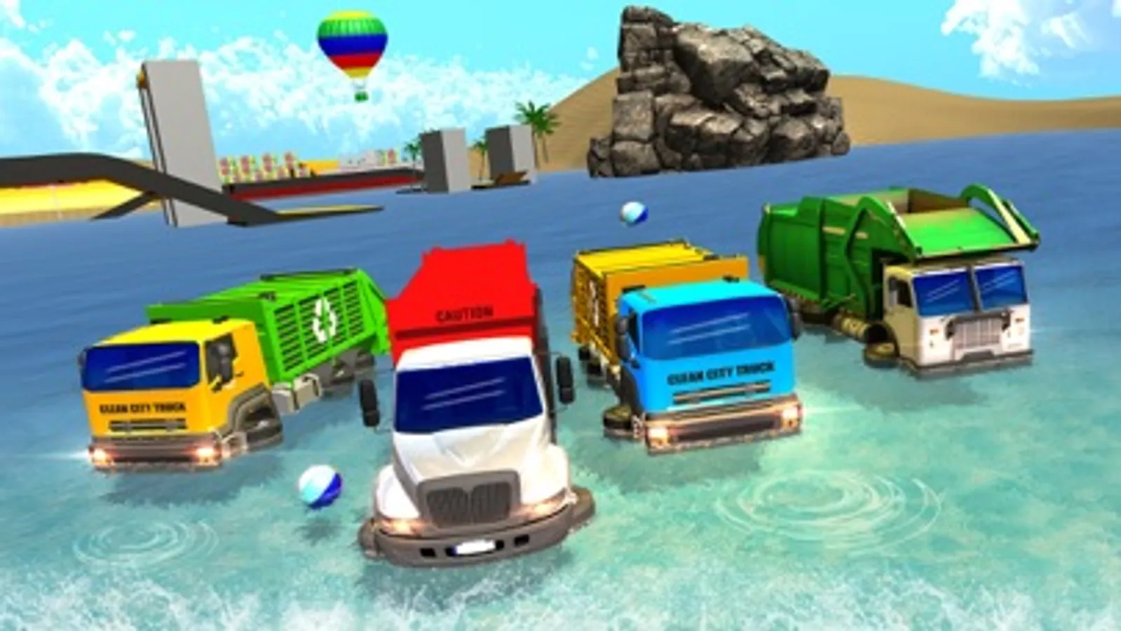 Drive the garbage truck in the water to collect trash and make ocean cleaner. Race your dumper on the mega ramps and avoid from hurdles to reach maximum score. Unlock your favorite garbage truck by collecting more coins.