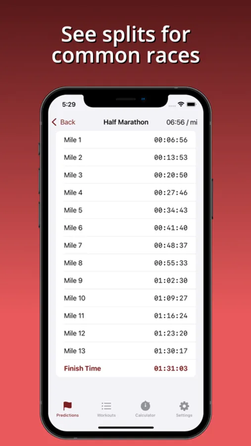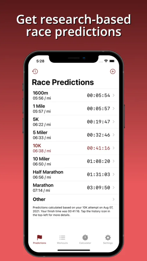 - Input a recent race or time trial and get accurate predictions across other common race distances.