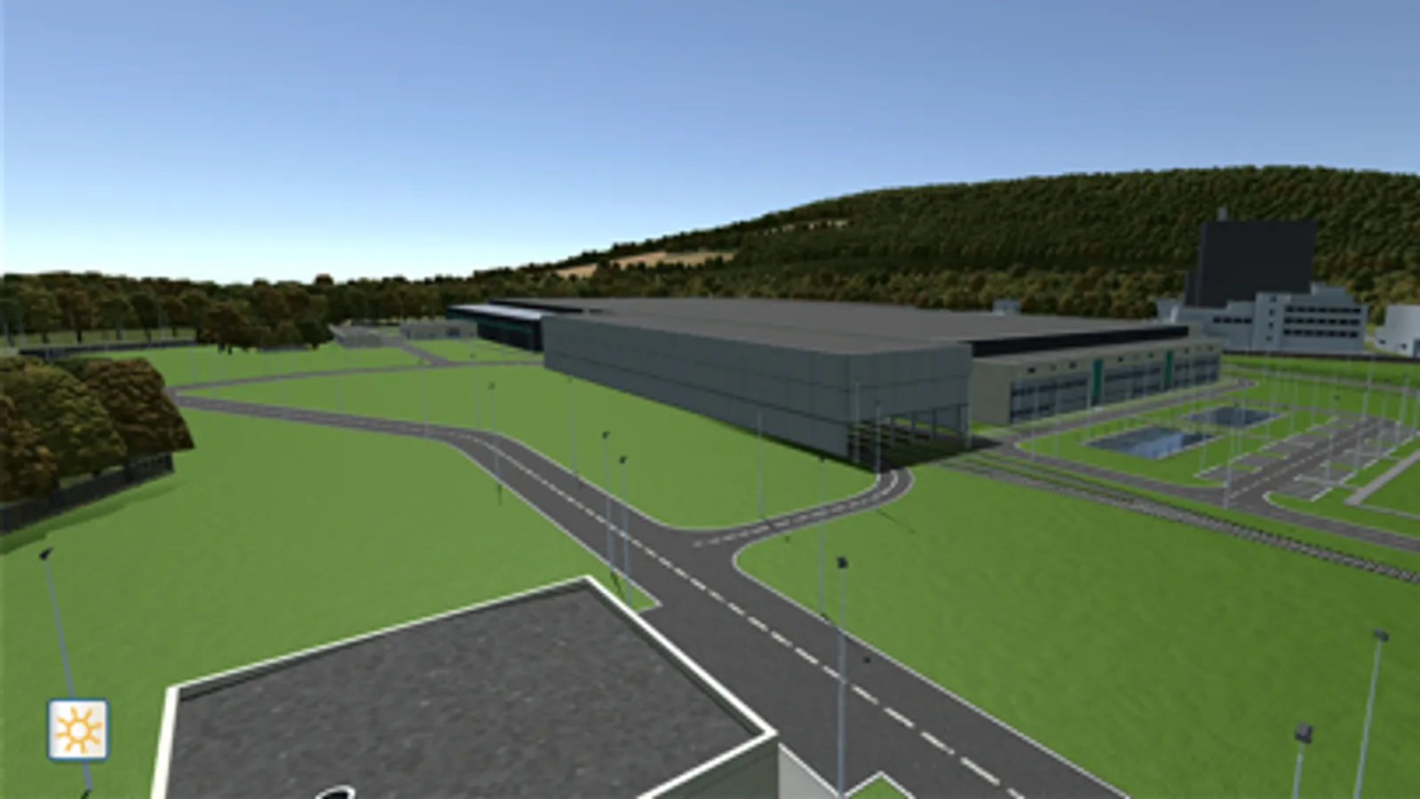 Erlebe in Augmented Reality (AR), wie das Logistikzentrum mit Nebengebäuden, Straßen und Gleisanschluss am ehemaligen Atomkraftwerk Würgassen in die Landschaft eingefügt werden kann. Einfach das blaue BGZ-Logo auf eine beliebige Fläche legen, Bildschirm antippen – und schon baut sich das Logistikzentrum vor Deinen Augen auf.