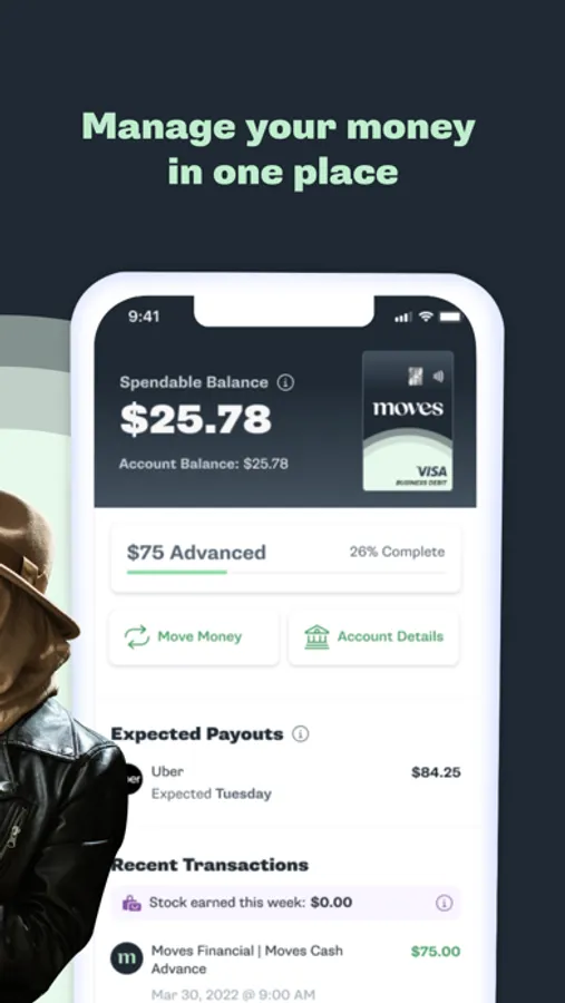 Moves is the banking app designed exclusively for gig workers pursuing the benefits of independent work. By helping our members better manage their money, access cash advances, and earn stock in the companies they work with, they are able to have greater ownership of their work.