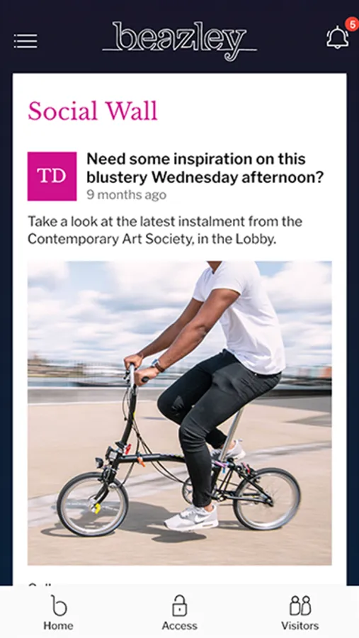 A smart workplace application for users to access building support, events, lifestyle and concierge services as well as integrated access control and QR code based visitor management, for users and their guests to access Beazley Offices using their smartphone.