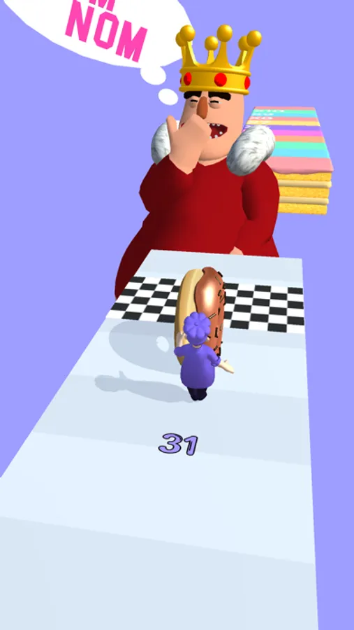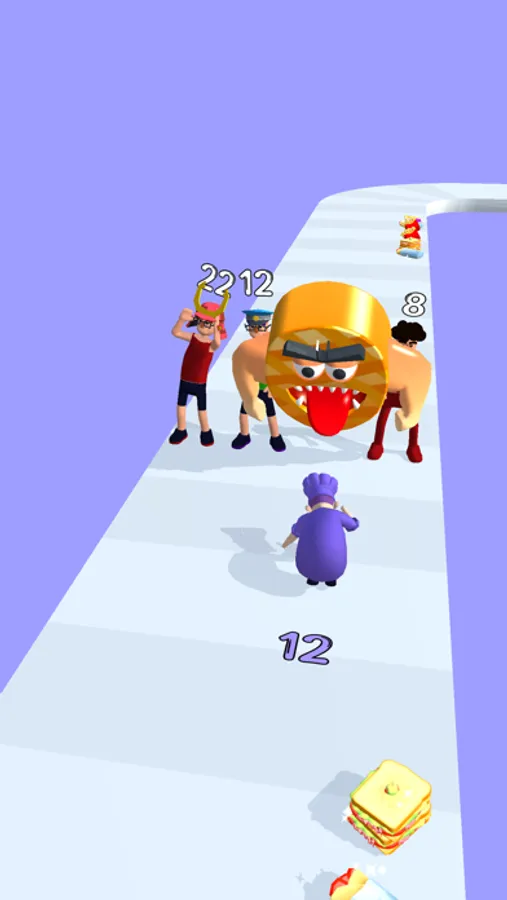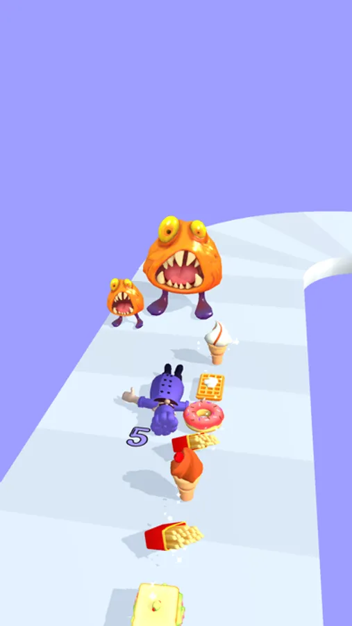 You are such a crazy chef ! Collect all the foods with your giant donut, feed obstacle characters and finish the platform !