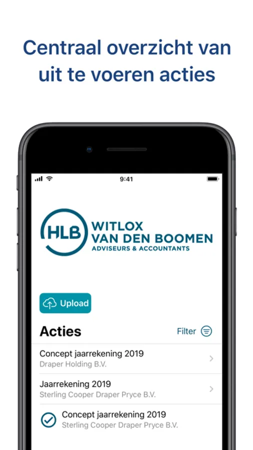 Met de Mijn HLB Witlox Van den Boomen app heb je 24/7 mobiel toegang tot je eigen administratie en kun je veilig en snel informatie uitwisselen met je accountant. Je ontvangt handige push notificaties als er acties voor je zijn.