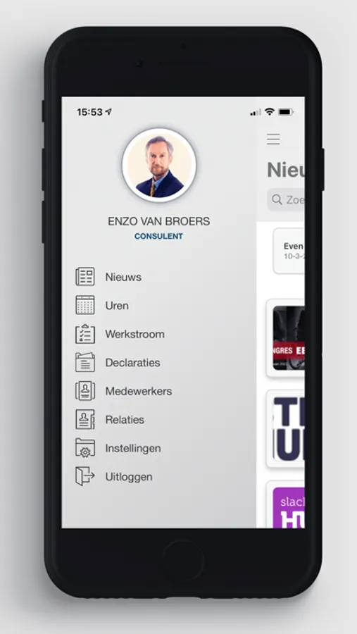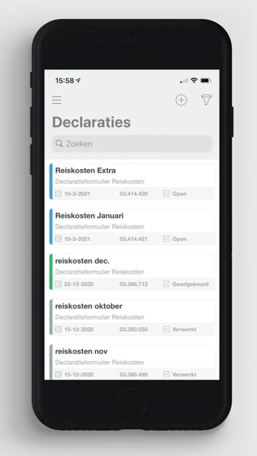 Declaraties kunnen rechtstreeks in de app worden aangevraagd met de mogelijkheid om foto's toe te voegen. De werkstroom van de consulent kan worden opgevraagd en is meteen vanuit de app af te handelen.