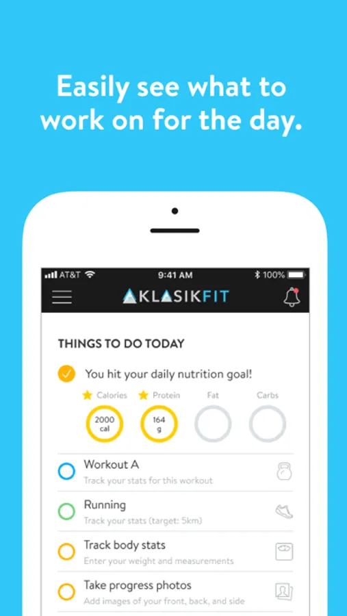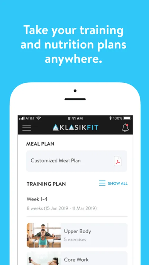 With the Klasik Fit App, you can start tracking your workouts and meals, measuring results, and achieving your fitness goals, all with the help of your personal trainer.