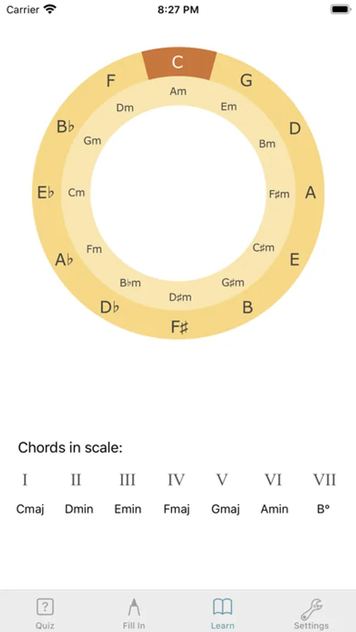 Use circle of fifths for learning new scales and triads. Understand order of chords within scale in second.