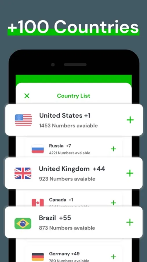 • Virtual Numbers App provides numbers from over 100 countries, but if you don't have a local phone number for your country, you can still get a US number or any other number and activate a WhatsApp account!