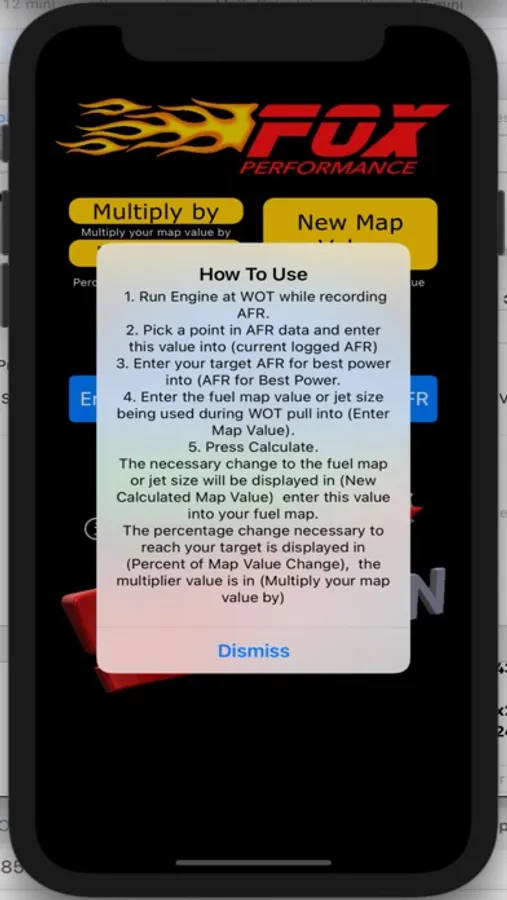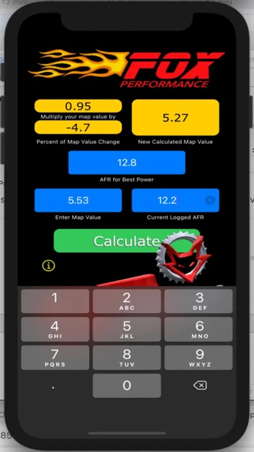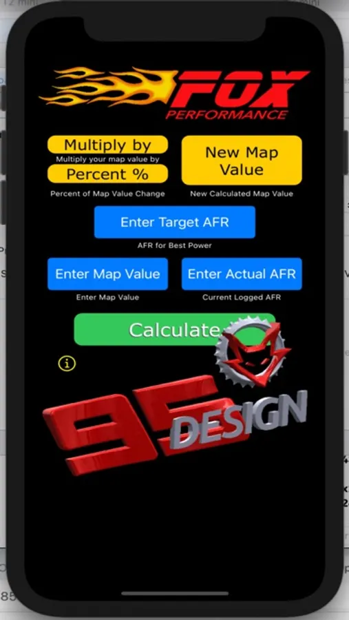 This is a simple math calculator for air fuel ratio tuning. You enter your target AFR that you desire. Make a dyno run and record AFR data. Then Enter the data from the dyno run and data from your fuel map and then press calculate. the output from the app will be the new fuel map value you can try for getting closer to your desired AFR target. ex. if you target is 12.8 and your actual recorded while running is 12.0. then you will need to subtract fuel from your fuel map and the app will tell you what percentage you will need to remove from the map to run closer to your desired/target AFR.