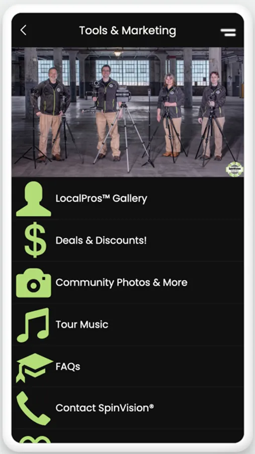 The SpinVision® mobile app is designed to help homeowners and real estate agents connect, review, order and schedule professional photography & multimedia services for marketing property online. Popular services include photography, video-tours, drone, 360, 3D/VR and floor plans. With just a few clicks users can quickly review samples, place orders, schedule appointments and discover LocalPros™ in their area who can help with the sale of their property.