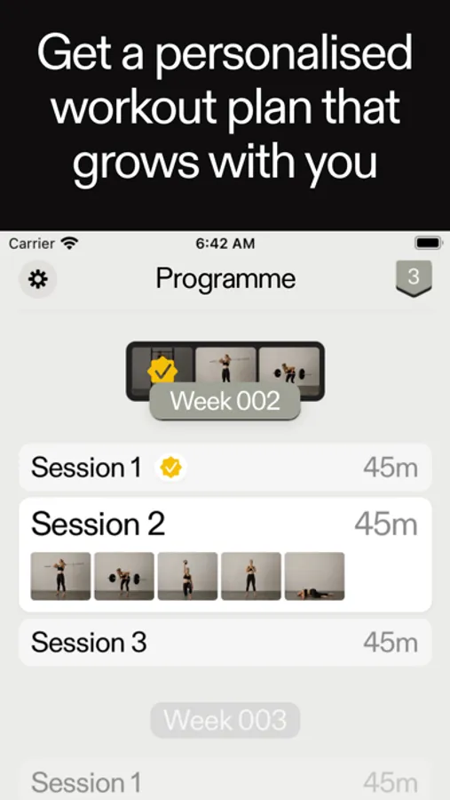 Programme is a combination of decades of research built into one algorithm and powered by our database of 1000+ exercises. All delivered into a seamless experience on your iPhone.
