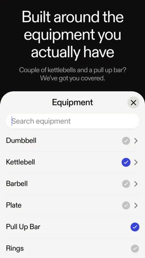 Programme builds your sessions from the ground up, selecting specific exercises, weights, reps, session structures and progressions, based on an understanding of your body's needs and goals.