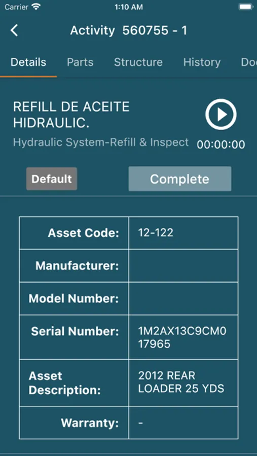 • Se podrá realizar inicio, pausa y completar ordenes de trabajo.