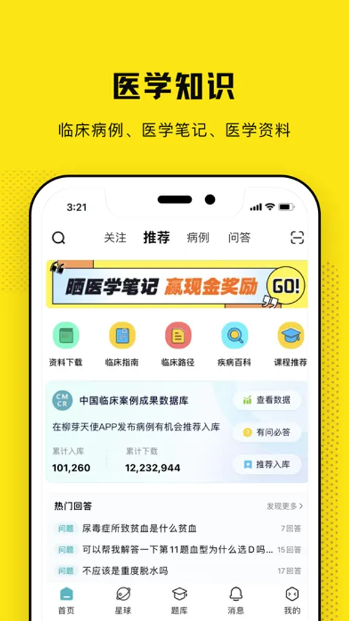 柳芽天使,专业医学社区,超过20万医生医学生在柳芽提问题回答问题,记病例,写经验,学习打卡。已积累海量医学问题及解答,海量病例及临床经验,学习经验,医考经验。同时产品提供超过15万到各类医学考试试题免费刷!覆盖医学类基础学科,临床执业医师考试,执业助理,医学考研专硕,学硕,主治考试,中医,护考,药师等医考题库全方位覆盖。同时提供更多好用的医学工具供大家免费试用。