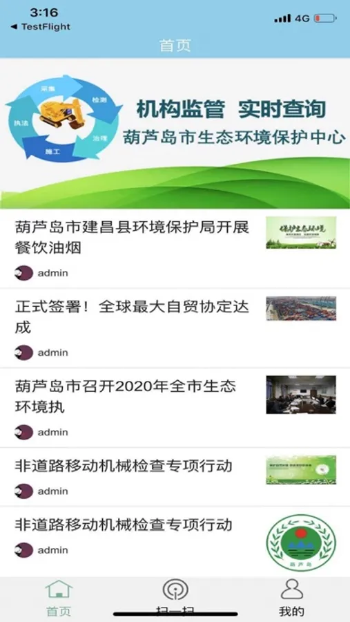 为实现对非道路移动机械环保标牌的信息的查询和验证开发建设的移动端应用,主要功能包含通知公告,扫码识别,设备信息等。应用场景为工作人员通过本软件识别、查询等级的数据信息。