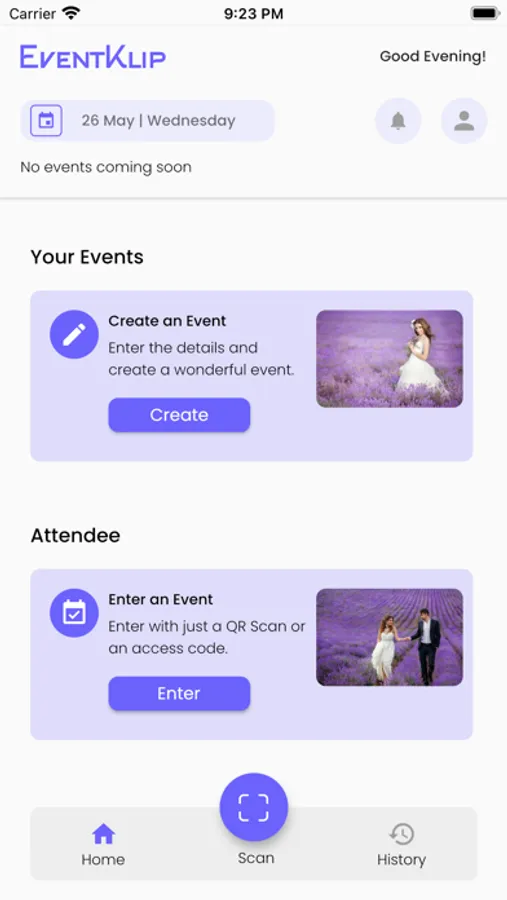 1. QR Scan - scan QR code and start adding content to an event. If you are a host of the event, generate the QR code from the mobile.