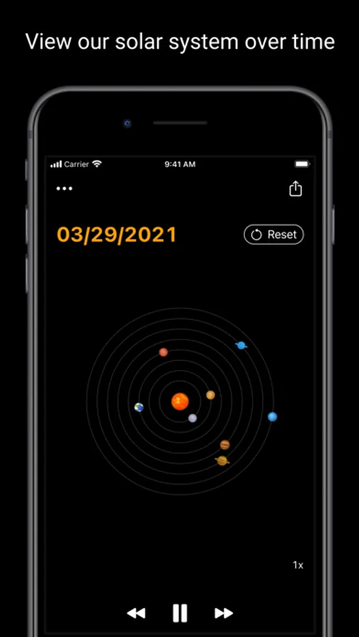 Speed up or slow down time to see how the planets rotate over time and grasp the scale of the Solar System.