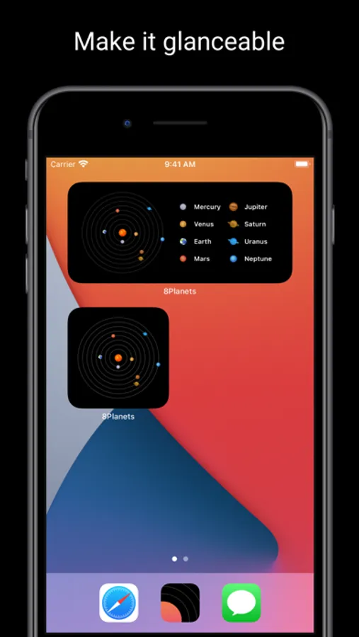 Widgets allow you to display the real-time Solar System on your Home Screen.