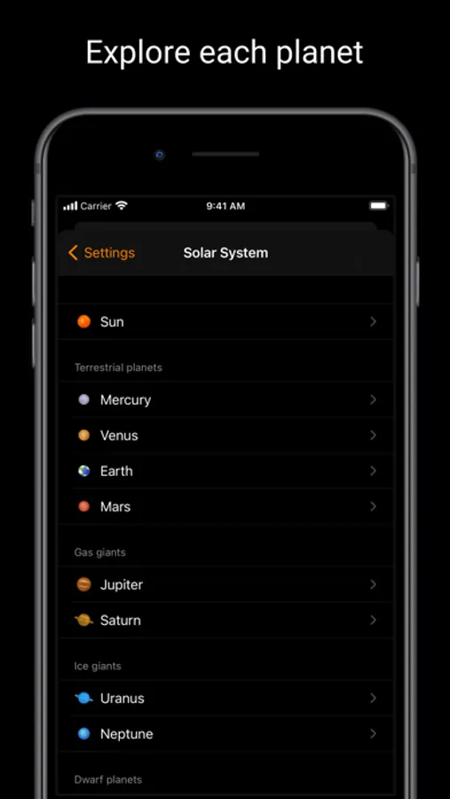 Apple Watch Complications, Overview of the planets, Option to show Pluto, Sharing your favorite moment of the Solar System, URL Scheme, and more.